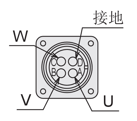 插頭管腳A對應(yīng)U,管腳B對應(yīng)V,管腳C對應(yīng)W,管腳D對應(yīng)接地。如圖: