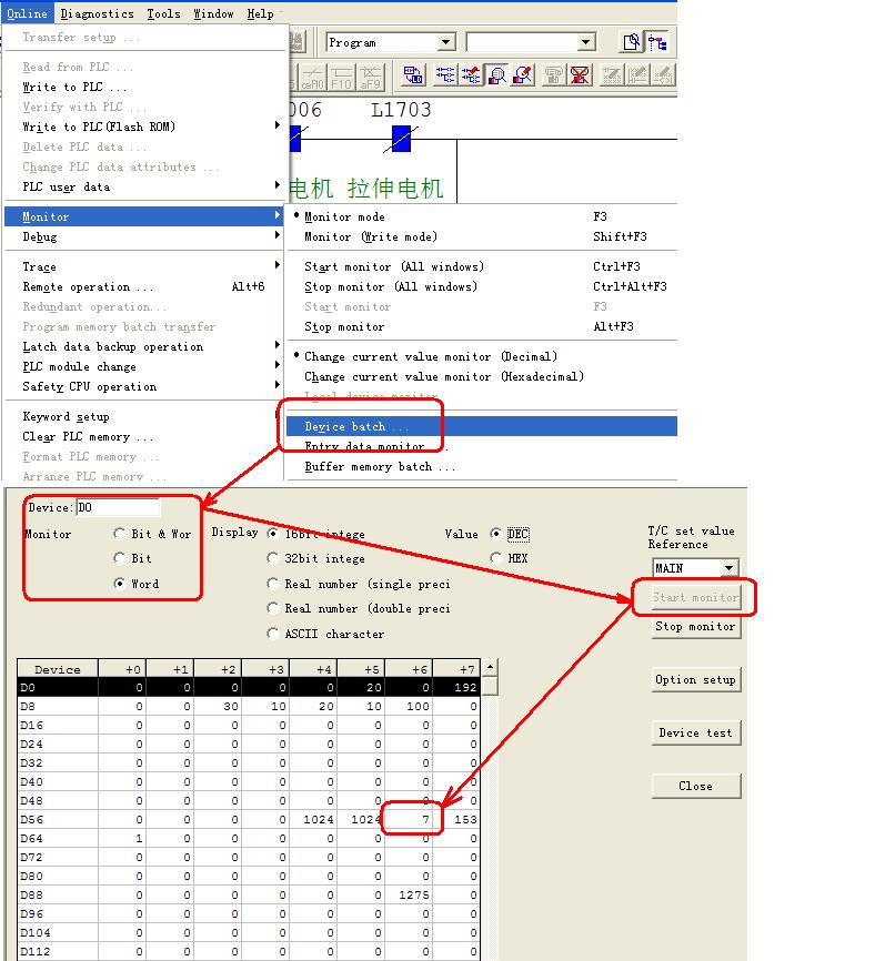 文本與PLC連接后,修改數(shù)據(jù),找PLC內(nèi)存中對應(yīng)的地址