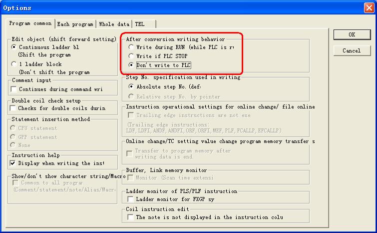 有可能是因為設(shè)置了轉(zhuǎn)換后寫入PLC,但實際上電腦未與PLC通訊上造成的警告。這可以在【Tools】--【Options】菜單中設(shè)置為轉(zhuǎn)換后不寫入PLC: