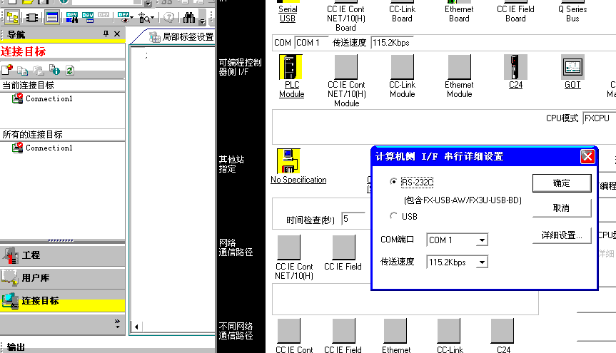 引用引用樓主zhujiyuan于2012-09-03 10:50發(fā)表的 GX Works2軟件通訊端口怎么設置? : 我的電腦沒有RS232通訊口,現(xiàn)買了一個USB轉RS232的轉接器。今天想用它來傳程序,可怎么也連接不上。提示端口問題。可我怎么也找不到在那設置端口。但此轉接器在OMRON PLC上可以使用。我已測試過。求請各位指點!謝謝!