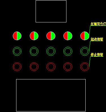 關于多個啟動停止按鈕及其指示燈在配電柜面板上的排列,下圖是一個控制5組交流接觸器的啟動停止的問題,并且分別有指示燈顯示。因為面板就只有那點東西,尺寸為600*800*2000感覺自己畫的不好看,請前輩指點