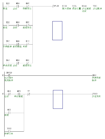 后面我用的DPLSR控制就不解了!我驅(qū)動M23就是步進正轉(zhuǎn)!<這是有位置脈沖的D134>反轉(zhuǎn)我是用M22控制但是我發(fā)現(xiàn)根本回不到原點初始位置!