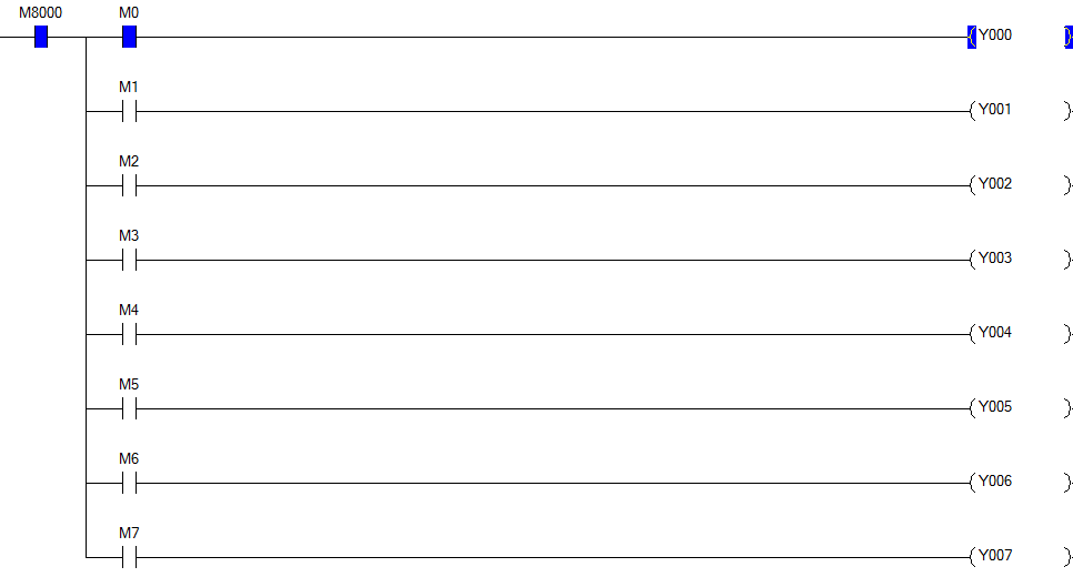 三菱梯形圖,手動部分,同一個按鈕,每按下一次順序動作置位一個動作。第二個按鈕每按一次,按照反順序復(fù)位一個動作。懇請大神賜教。多謝了。