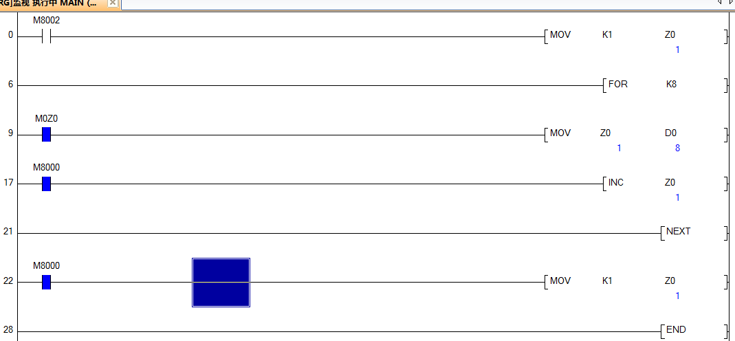 這就是一個標準的循環語句結構,用FOR 循環配合變址寄存器指令