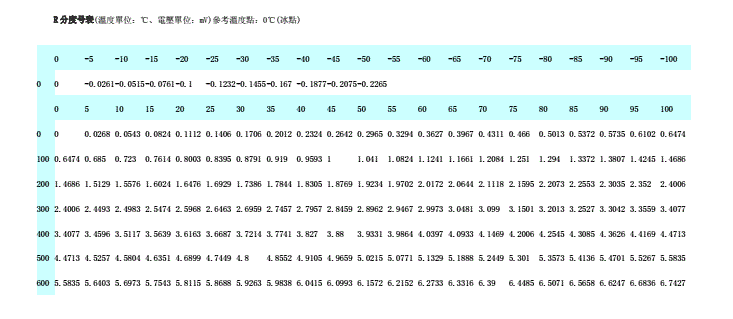 這是R分度號的熱電偶的電壓_溫度對照表。