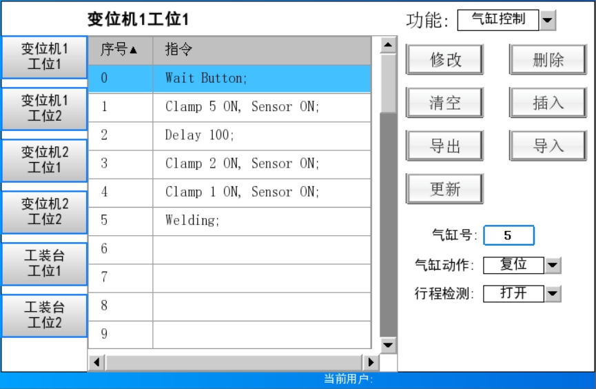 最近一個設備上需要6個氣閥控制機器人工裝,每一套工工裝對應氣缸數量和動作時序不一樣,需要根據現場使用工裝的不同,設定氣缸動作順序,請高手指導一下