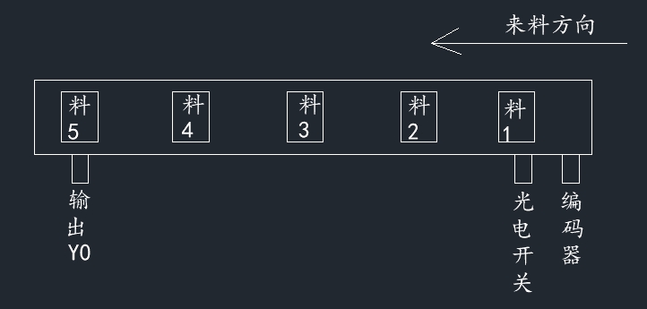 一個輸送帶,頭上接一個編碼器,一個光電開關,整條輸送帶上可以放5個產品,來料后檢測到光電開關開始計數,到末尾給一個輸出。輸送帶上有幾個產品不定,反正是1個到5個。不知道有沒有人有好的方法?