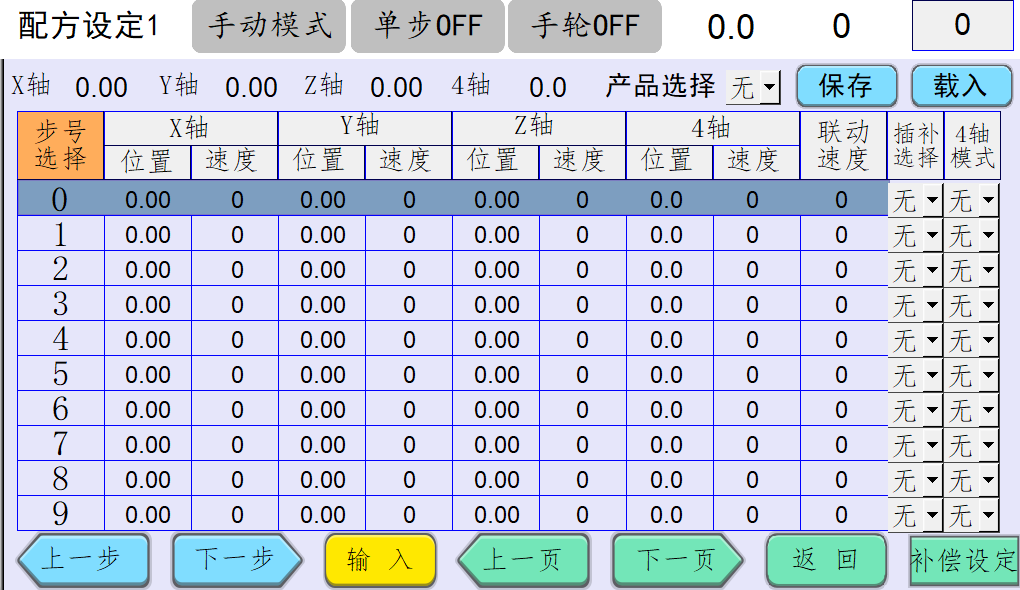 寫了一個類似的,用手輪示教,100多步.....配方數據傳送給當前位置