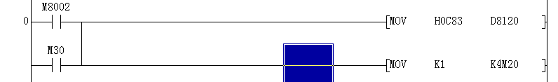 當(dāng)開機(jī)送電M8002執(zhí)行一次接通脈沖和當(dāng)M30接通時(shí),執(zhí)行兩個(gè)傳送程序:MOV      D83     D8120