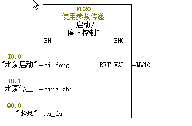 各位高手,本人是初學,對于上圖所示的“使用參數(shù)傳遞”(是不是又叫條件調(diào)用功能塊),到底如何輸入條件這個參數(shù),也就是如何輸入“水泵啟動、水泵停止、水泵”這些條件,本人弄了半天也沒有弄明白是如何輸入?