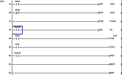 它是指在一個掃描周期內(nèi)循環(huán)一千次…這個一千在程序里看不到它的變化…至于第二次X3接通D1里變成了二千…是因為你循環(huán)結(jié)束了沒有對D1復(fù)位…