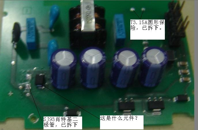 一臺S7-226CN   DC24電源,誤接入220V交流電損壞。檢查后,發現電源板中有以下零件損壞:T3.15A圓形保險,SJ93貼片肖特基二極管(封裝形式5025規格)。還有個零件看不清楚型號,只好畫個草圖,請教各位幫忙看下。在此先謝過。