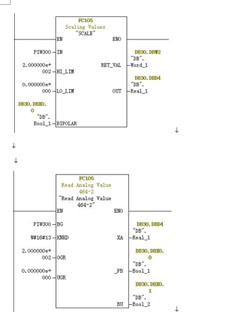 我繼續解釋:“不客氣。王工,您要注意這2個FC105在庫中位置不一樣,名稱也不一樣。TI-S7 Converting Blocks > FC105,名稱是SCALE。S5-S7 Converting Blocks > FC105,名稱是Read Analog Value 464-2。對于常用的S7模塊,您要用TI-S7 Converting Blocks > FC105,這個是李逵,保證好使,呵呵。同理,FC106也有兩個,調用時多注意”