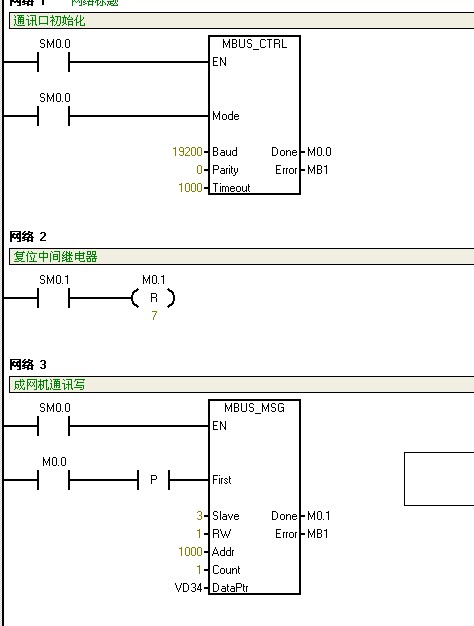 plc:西門子226cn。變頻器:匯川MD380,問題:怎么用西門子200plc中的MBUS-MSG改寫匯川MD380的頻率?PLC的端口0已經初始化位modbus模式。變頻器地址為3,匯川說明書上的參數地址1000是頻率設定,我應該怎么修改這個程序