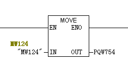 把位存儲字MW124中的數值移到模擬量PQW754輸出。 (PQW是模擬量輸出字,選址范圍0-65534)