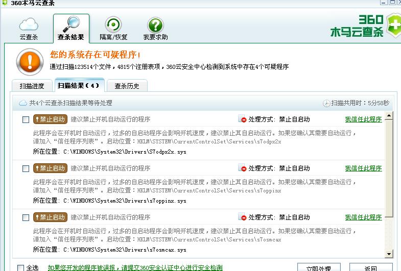 感謝SJM的回答。基本找到問(wèn)題了,確實(shí)是驅(qū)動(dòng)問(wèn)題,應(yīng)該是在裝驅(qū)動(dòng)的時(shí)候被殺毒軟件誤報(bào)了。我在網(wǎng)上找了些驅(qū)動(dòng),但會(huì)開(kāi)機(jī)自啟動(dòng),不知道該不該禁止它們。報(bào)警見(jiàn)圖
