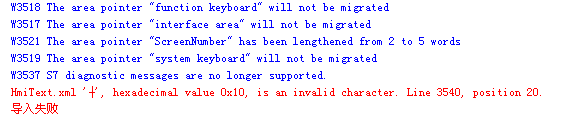 急求各位大蝦,現(xiàn)我手頭有一個OP7的屏壞了,需移植到OP77B里面,原OP7是用德語編的多語言項目,可我用WinCC Flexible 2008 移植的過程當(dāng)中出現(xiàn)了如下錯誤提示: