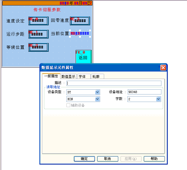 做個(gè)“數(shù)值顯示”的控件   來(lái)顯示伺服當(dāng)前脈沖的值 。