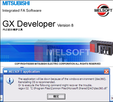 安裝完三菱PLC編程軟件后,打開軟件時出現(xiàn)如圖所示的提示框,如果點擊確定,隨即自動關(guān)閉了正在請啟動的編程界面,不知道為什么?請教師傅們