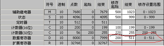 2、D200~D511是電池保持區域,通過參數設定可改變為非電池保持區域;