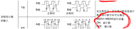 初學(xué)者求教:看到很多人說M8251能控制C251的增減計(jì)數(shù),但是我怎么控制不了?不管M8251 ON還是OFF,編碼器在正轉(zhuǎn)時(shí)C251就是增計(jì)數(shù),編碼器反轉(zhuǎn)時(shí)C251就是減計(jì)數(shù)。所以我理解M8251就只能監(jiān)視編碼器的正反轉(zhuǎn),而不能控制C251的增減計(jì)數(shù)。
