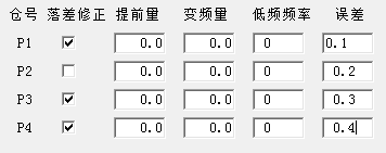 2016-6-16補(bǔ)充:已上傳A系列判斷程序。難度大一點(diǎn)的,如上圖,假設(shè)P1~P4落差修正位對(duì)應(yīng)M0~M3,則如果勾選P1 P3 P4,而P2不勾選,則后面諸如提前量(落差),變頻量,誤差等根據(jù)勾選項(xiàng)進(jìn)行修正,P2的各項(xiàng)參數(shù)不修正(根據(jù)設(shè)定值運(yùn)作),程序各個(gè)量選用變址編程,假設(shè)變址Z=2表示P3的各項(xiàng)要修正。設(shè)想M2勾選,即ON,程序運(yùn)作到Z=2時(shí),寫一程序判斷M0~M3中的M2為ON,并根據(jù)M2為ON修正P3倉(cāng)里各項(xiàng)參數(shù)