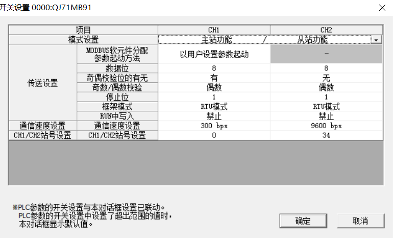 QJ71MB91做從站,CH1 主站300波特率(不用)CH2從站波特率只能設(shè)定9600,