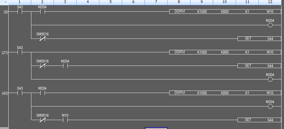 我明白大大意思,我是用STL步進(jìn)點(diǎn)S寫(xiě)程式S43是常ON要等條件成立後離開(kāi)就會(huì)OFF,距離任意設(shè)定所以用DDRVI,就怕一個(gè)掃秒周期的問(wèn)題,如果DDRVA有條件離開(kāi)就沒(méi)這問(wèn)題,謝謝大大回答