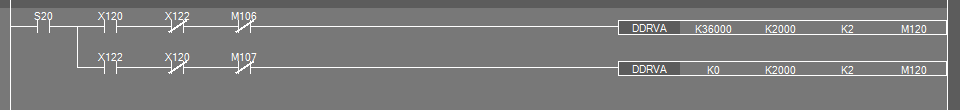 x120手動正轉,x122手動反轉,m106正轉極限,m107反轉極限,按壓x120正轉放開停止,按壓x122正轉放開停止,正常按壓都沒問題如果正反按壓速度快就會H1810錯誤,請較高手指導一下謝謝-FX5U-PLC
