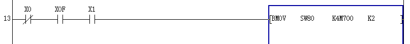 引用引用第2樓cuiyl于2008-11-07 09:05發(fā)表的 : 如果是BMOV SW80 K4M700 K2 意思就是傳送特殊連接繼電器sw80 開始 到 k4m700 =m700-m715 傳送位數k2=2個16位 結果就是從sw80開始到sw112的開和關也就是0.1數據映射到m700開始到m732上面。本人表達能力不行請多包涵!