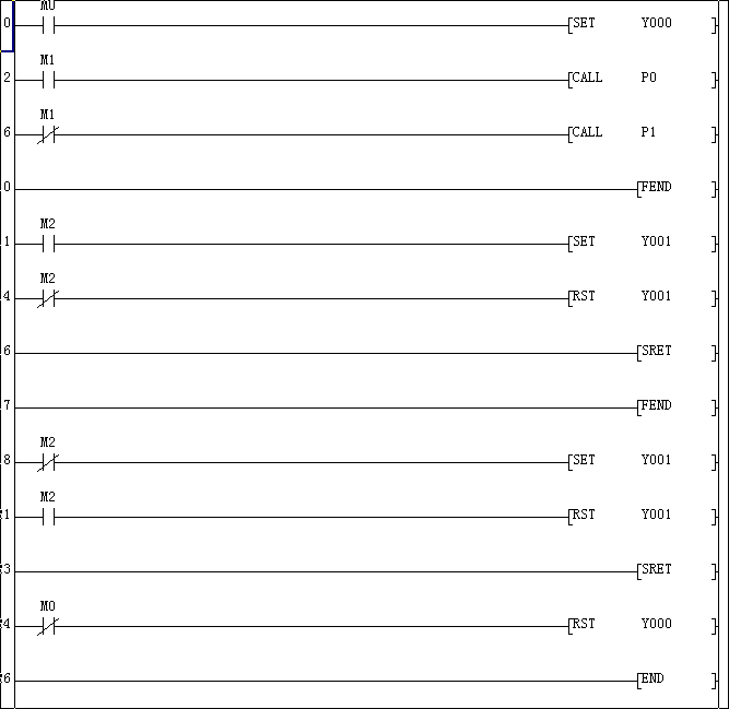 幫我看看程序?qū)Σ粚Γ詈迷囋嚕覜]有三菱的PLC。謝謝!目的:m1動作,調(diào)用11-16步,m1不動作,調(diào)用18-21;第24步一直調(diào)用