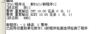 請問歐姆龍PLC程序在編譯時,出現(xiàn)警告,是不是程序有問題?用的指令是SET和RSET。但是也可以下到PLC里面工作。