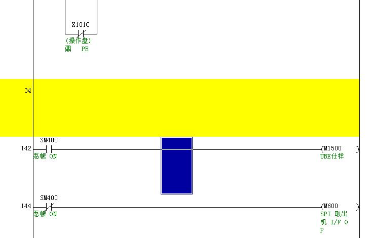 怎么會是34直接到142,中間的程序被刪除了嗎?  樓主還有個問題請教,Q系列伺服中文手冊你找到了嗎?雅馬哈機械手接觸過沒有?