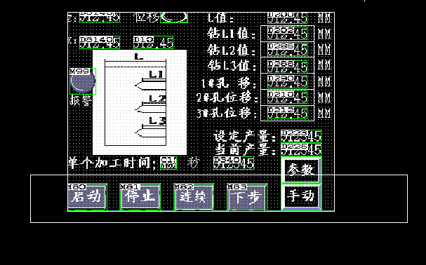 整個(gè)畫面我都編寫好了;最下面一排 {啟動(dòng).停止.連續(xù).單步.手動(dòng).參數(shù)} 這幾個(gè)按鍵,為什么傳輸?shù)接|摸屏里面去沒有顯示,如下圖