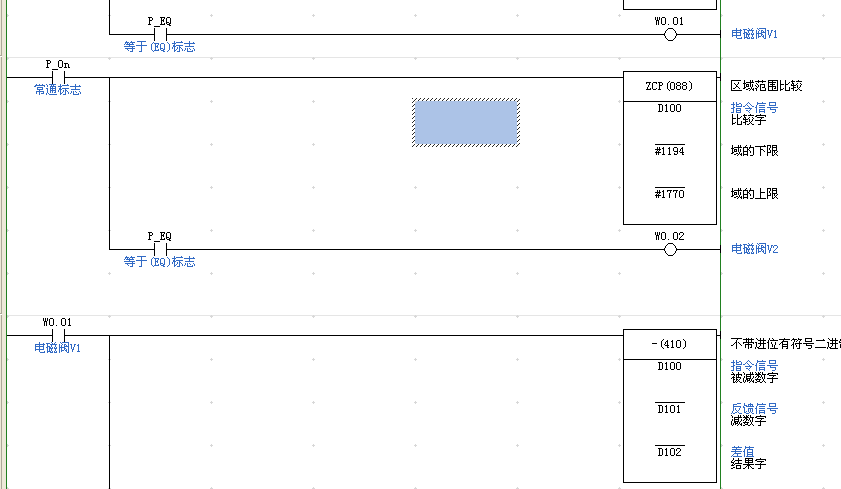 控制一個3位4通電磁閥V1,V2,指令信號為4-20ma,反饋信號為4-20Ma,要求指令信號為4-12ma時電磁閥V1動作,當反饋信號和指令信號差值很小時V1停止工作;當指令信號為12-20MA時電磁閥V2工作,當反饋信號和指令信號之間差值很小時V2停止工作。求大俠告知,謝謝了