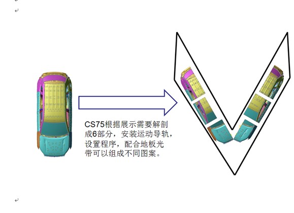 1.制作滑軌、支架及滑動平臺使剖分的六部分可以滑動,設計展區(解剖車展示區域)環境以配合解剖車展示效果,如設計地板光帶等,設計編制程序使剖開的六部分配合周圍環境可以組成不同圖案。設計并制作展區(解剖車展示區域)環境,如設計地板光帶等,以配合車體滑動時組成不同的圖案,變換圖案≥3種.2.對下部滑動平臺進行模塊化設計,方便安裝、拆卸、運輸