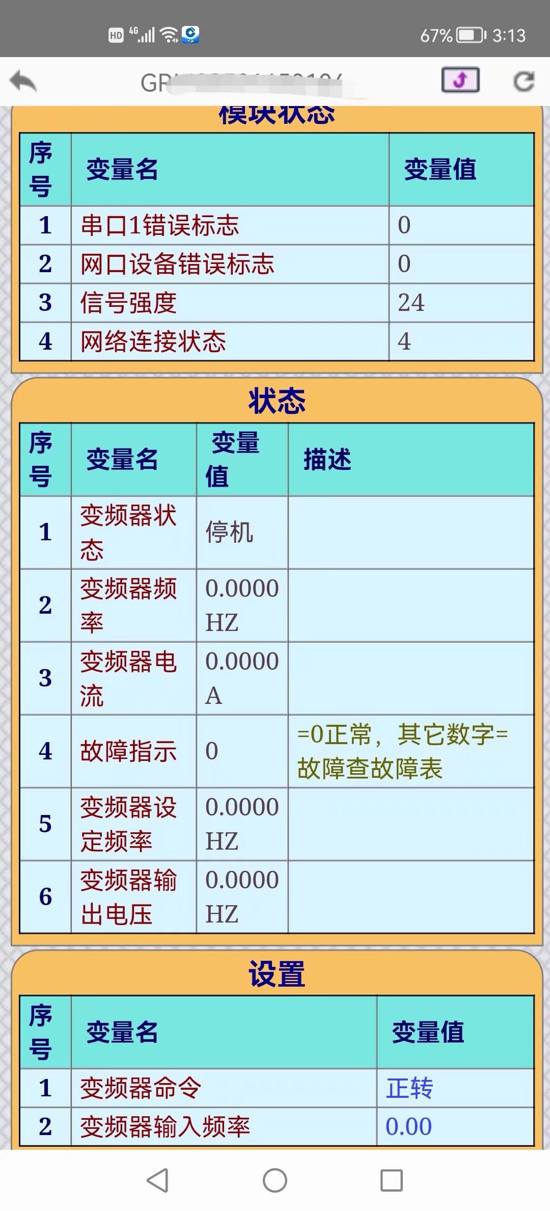 變頻器手機遠程監控系統,控制開停以及設定頻率。利用遠程模塊走485 modbus rtu協議跟變頻器通訊。