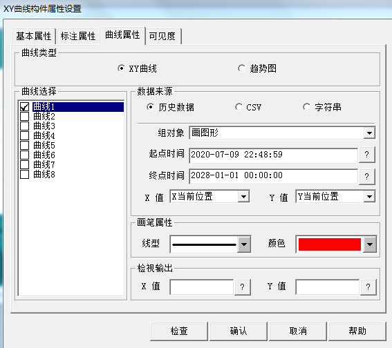 先添加一個組對象把你需要顯示的XY位置存儲器加到 組對象里邊,然后畫面中添加XY曲線構(gòu)件,剩下的簡單一設(shè)置就行了。