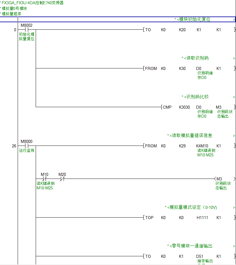FX3U通信指令控制E740_FX3U-4DA控制變頻器02(PLC-模擬量模塊-RS-485模塊)