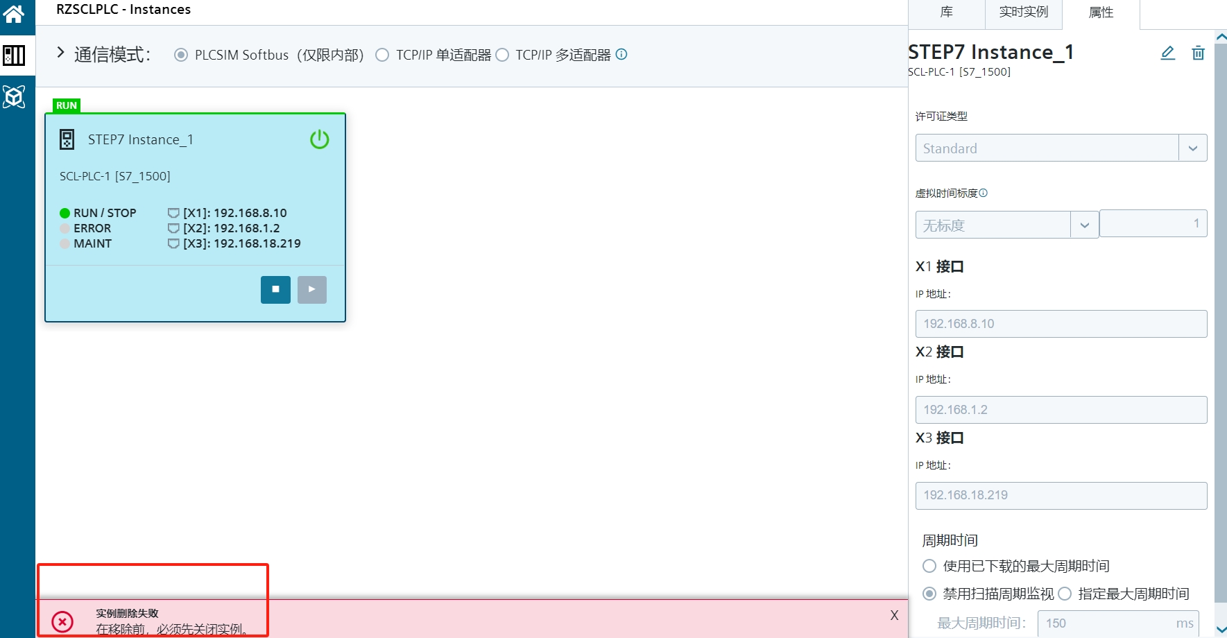 PLCSIM的實例刪不掉,實例屬性也改不了?