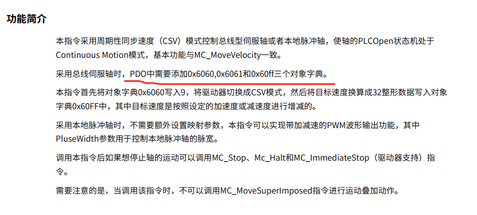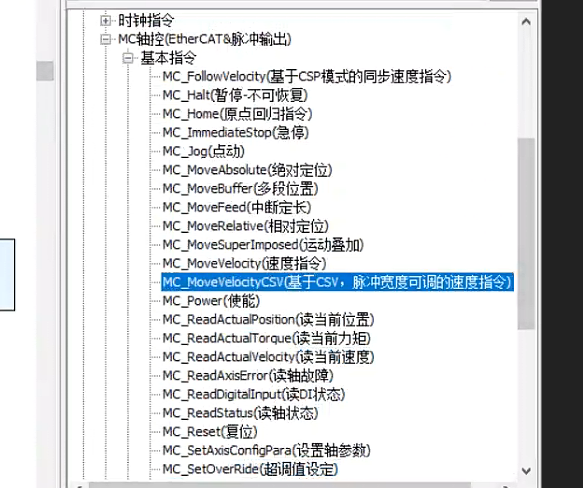 查了手冊有一個MC_MoveVelocityCSV—基于CSV,脈沖寬度可調的速度指令