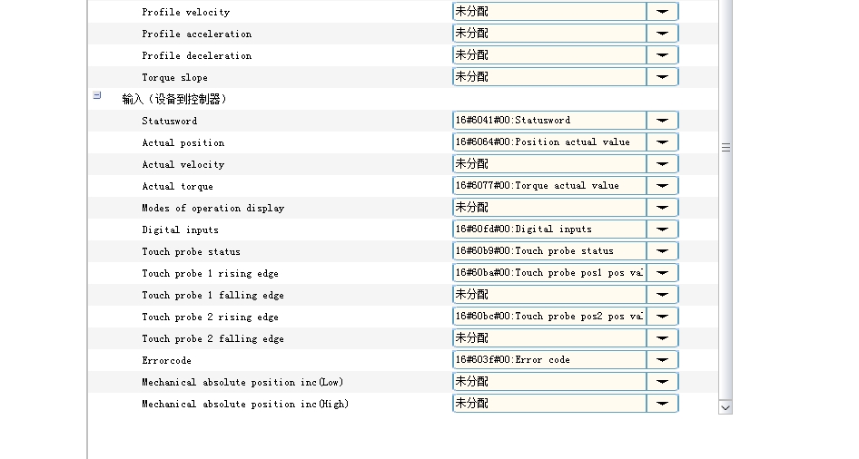 采用總線伺服軸時,PDO中需要添加0x6060,0x6061和0x60ff三個對象字典。