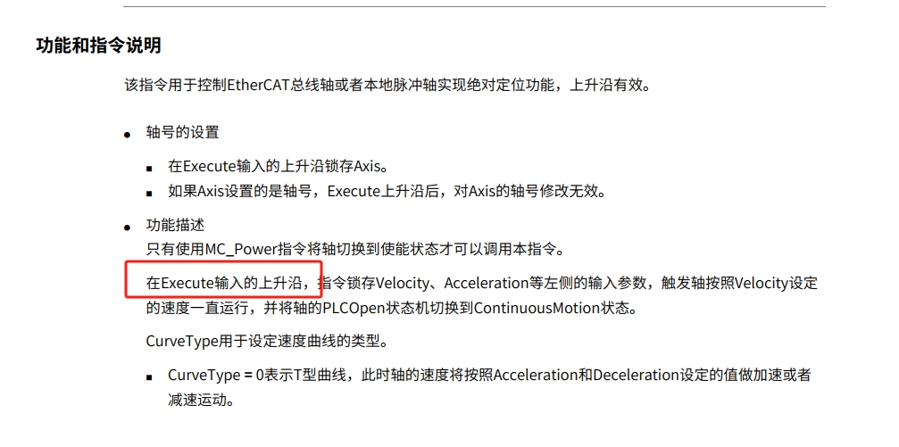 調用本指令后如果想停止軸的運動可以調用MC_Stop、Mc_Halt和MC_ImmediateStop(驅動器支持)指