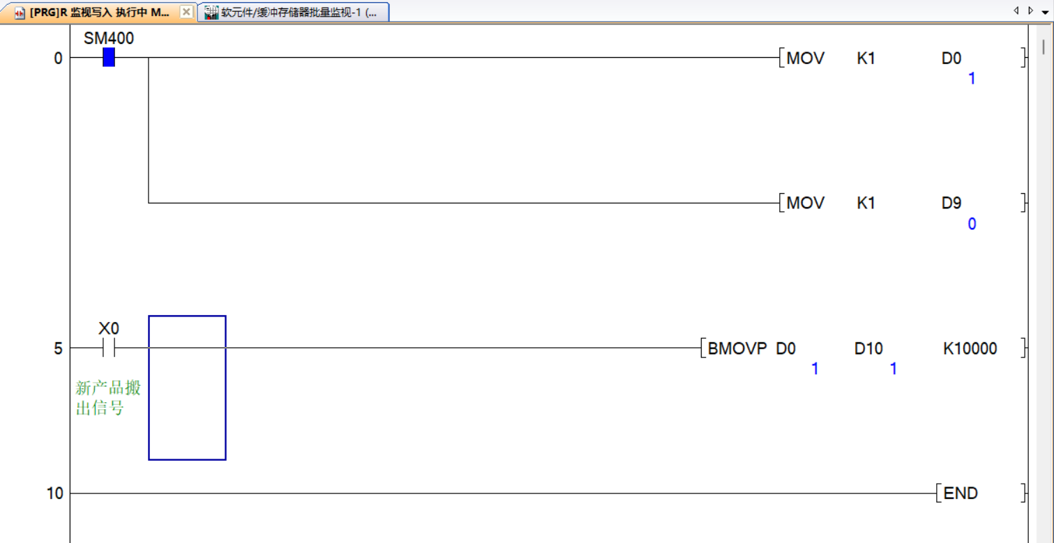 都寫成這樣了,為什么不換個思路,當產品出去時候例如有個感應器:X0 也就是當   X0  接通   BMOVP ZR0 ZR10 K10000 不就完事了,D0-D9存新產品的信息。后面屬于前一次的,也就是履歷。