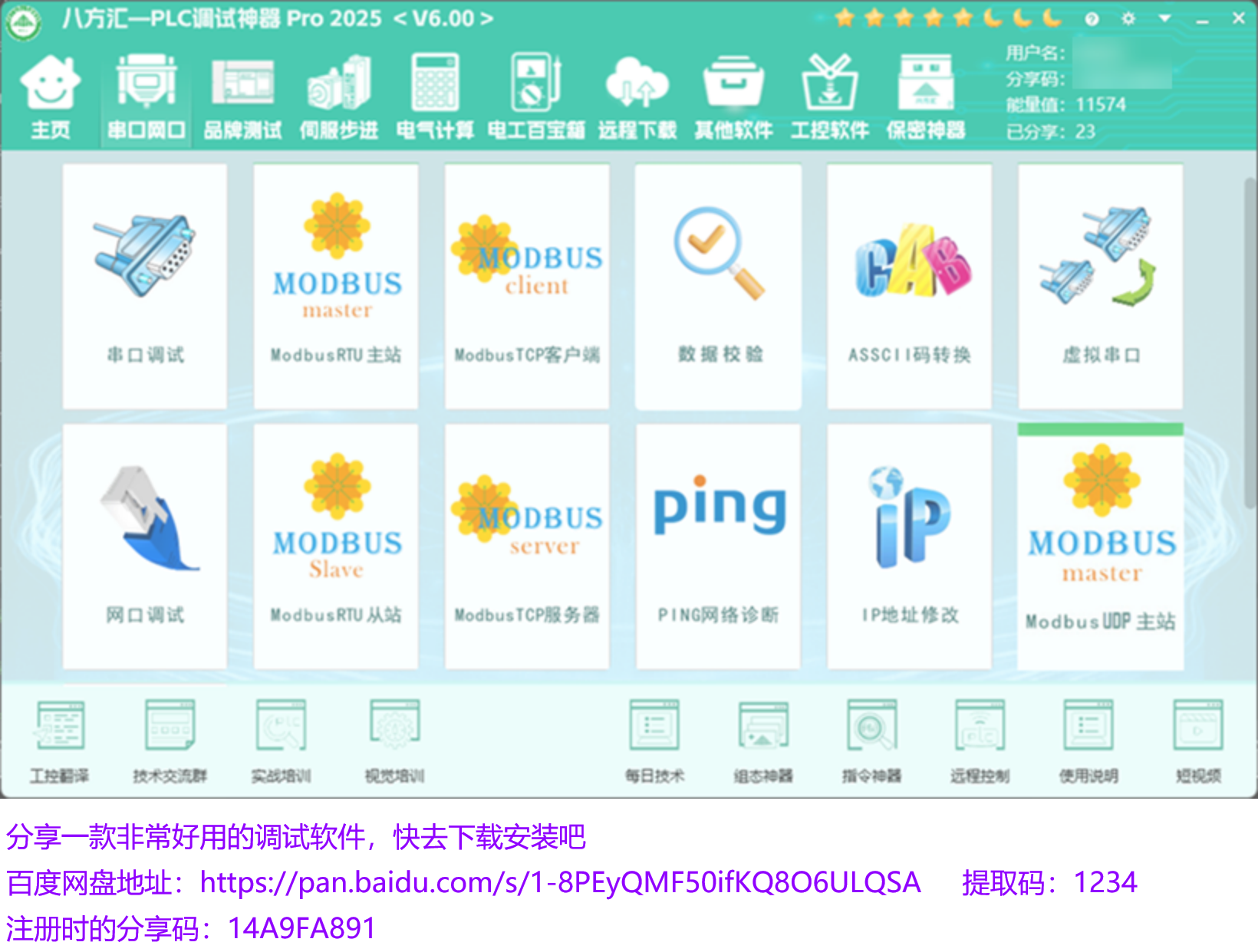 最近用到的一個工具八方匯-PLC調(diào)試神器,分享給大家,有需要的可以下載試用一下吧鏈接:https://pan.baidu.com/s/1-8PEyQMF50ifKQ8O6ULQSA提取碼:1234   分享碼 14A9FA891