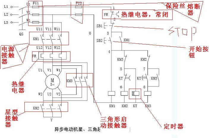 [attachment=90719]圖中的星三角啟動,KM1  ,   KM2  ,    KM3  ,我知道其中兩個是星形與三角形啟動的相互轉換用的繼電器,但多出來的那個繼電器是做什么用的,還有,圖中三個繼電器各是起什么作用,我實在是分不清楚~~~請大俠指導~~~
