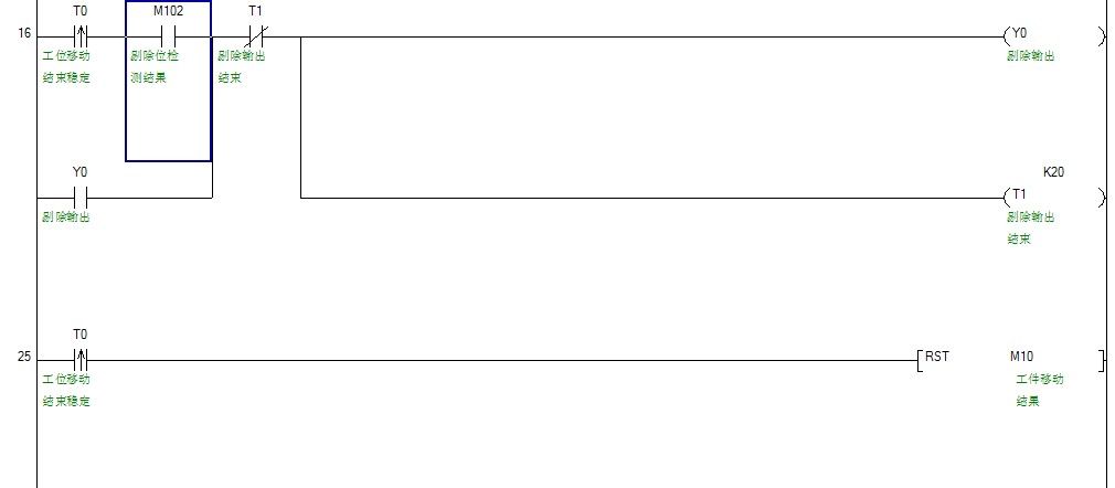用不良信號在檢測工位檢測結束時置位m位,再用SFTR指令把不良信號傳遞到下一工位