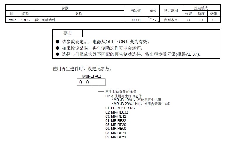 ·沒有連接參數No.0選擇的再生制動選件。 →正確設定參數No.0 。