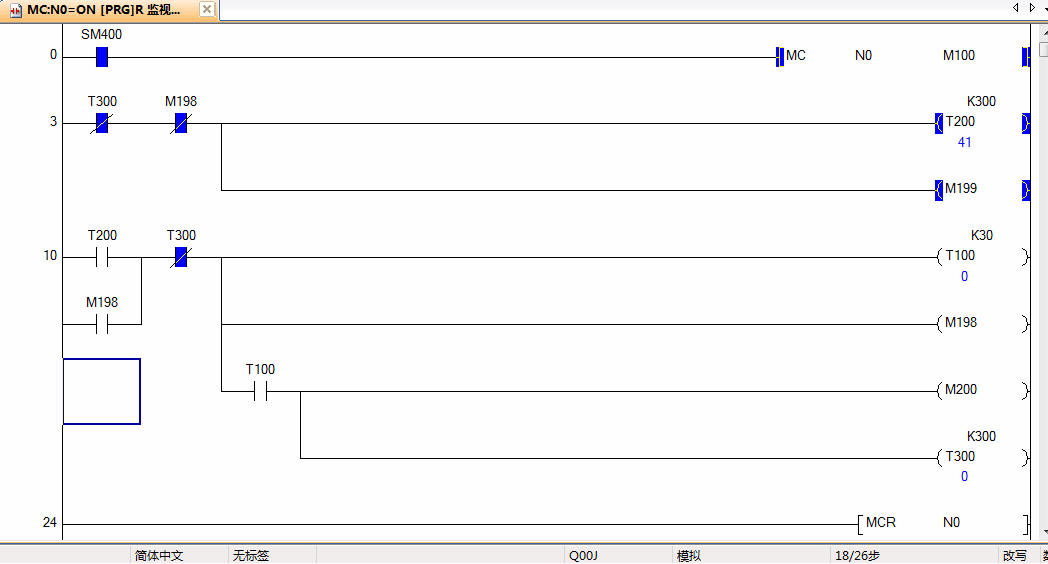 你試過模擬了嗎?或者說你把程序寫入到PLC測試過了嗎?