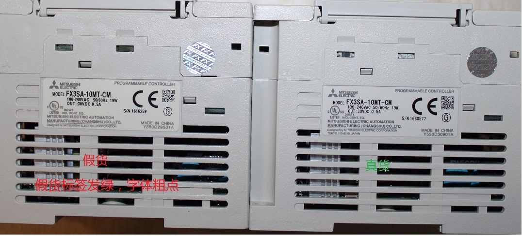 從去年開始,市場上陸續(xù)出現(xiàn)假貨FX3SA,FX3GA的PLC。 再加上之前早已出現(xiàn)的FX3U,FX2N的假貨。目前FX系列已經(jīng)假貨成災(zāi)。